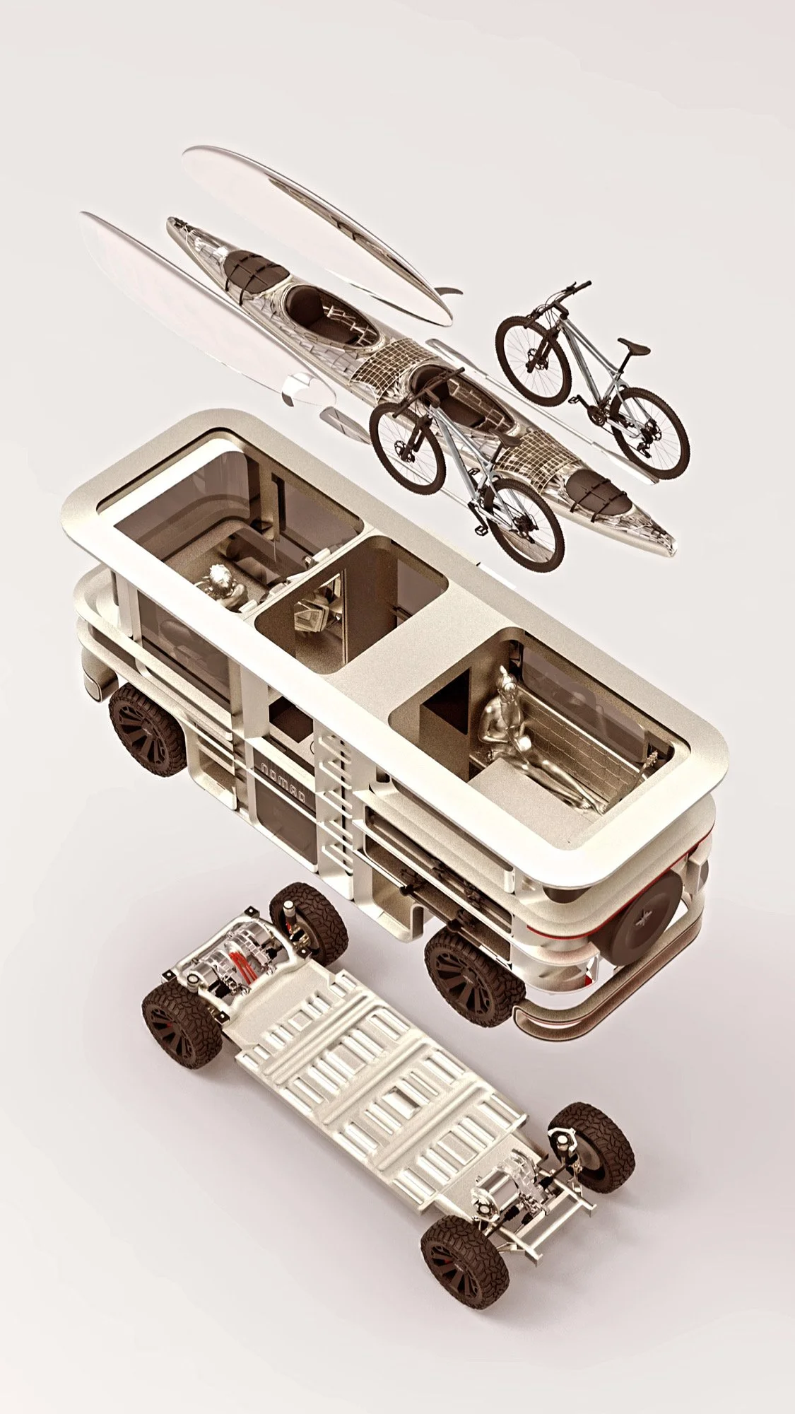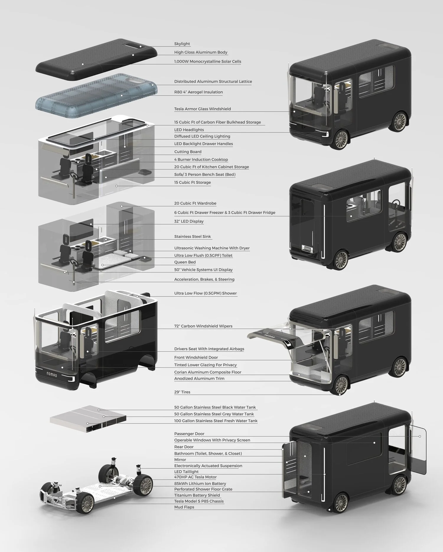 The Original Nomad HouseCar. Built ontop of the Telsa Model S / X Chassis, this is the ultimate urban cruiser. With enough Solar power from its roof alone to power all your daily living needs.